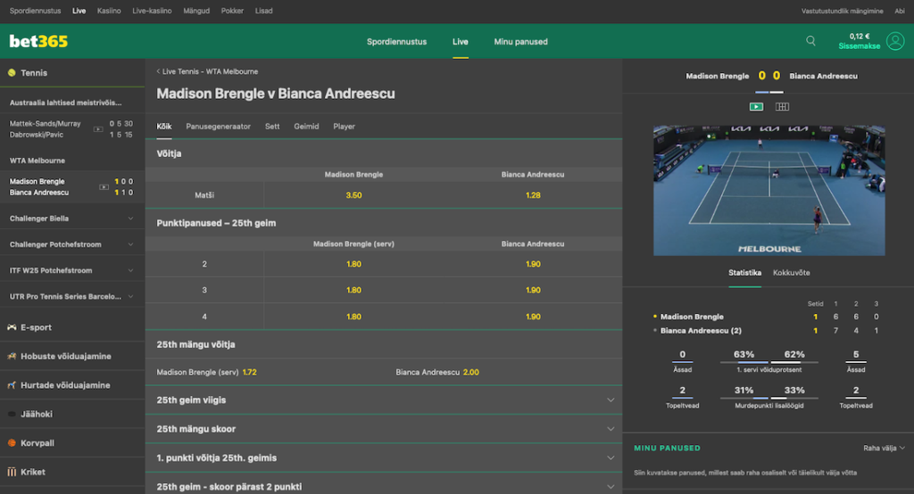 Kõige suurem pluss bet365 puhul on kindlasti operaatori usaldusväärsus ja professionaalne lähenemine. Loomulikult on olemas võimalus kasutada populaarset cashout valikut, kui tundub, et sinu panus hakkab kaotama ja tahad päästa, mis veel päästa annab.